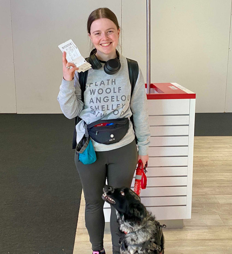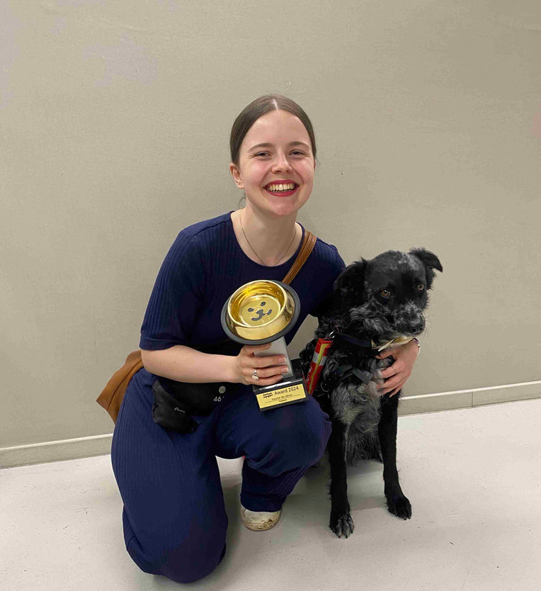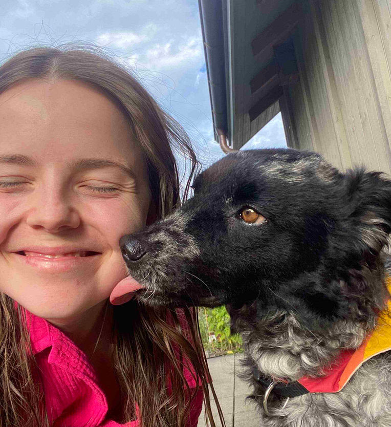"Taskeen und ich haben uns vom ersten Moment an gegenseitig ausgesucht. Als ehemalige Strassenhündin zeigt sie mir ihre Dankbarkeit jeden Tag im Einsatz. Ohne sie könnte ich nicht an einer regulären Präsenzuniversität studieren, da die Reizeinflüsse für mich als Autistin zu gross sind; Taskeen gibt mir Sicherheit, weil ich weiss, dass sie mir helfen kann, auch wenn ich komplett alleine bin (oder mich alleine fühle) - sie ist unvergleichbare Lebensqualität."